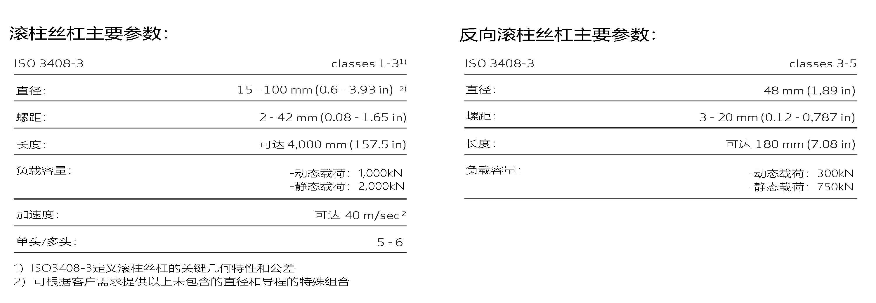3、導(dǎo)程更?。簩?dǎo)程小至2mm,并且可按客戶需求制作更小導(dǎo)程的滾柱絲杠;