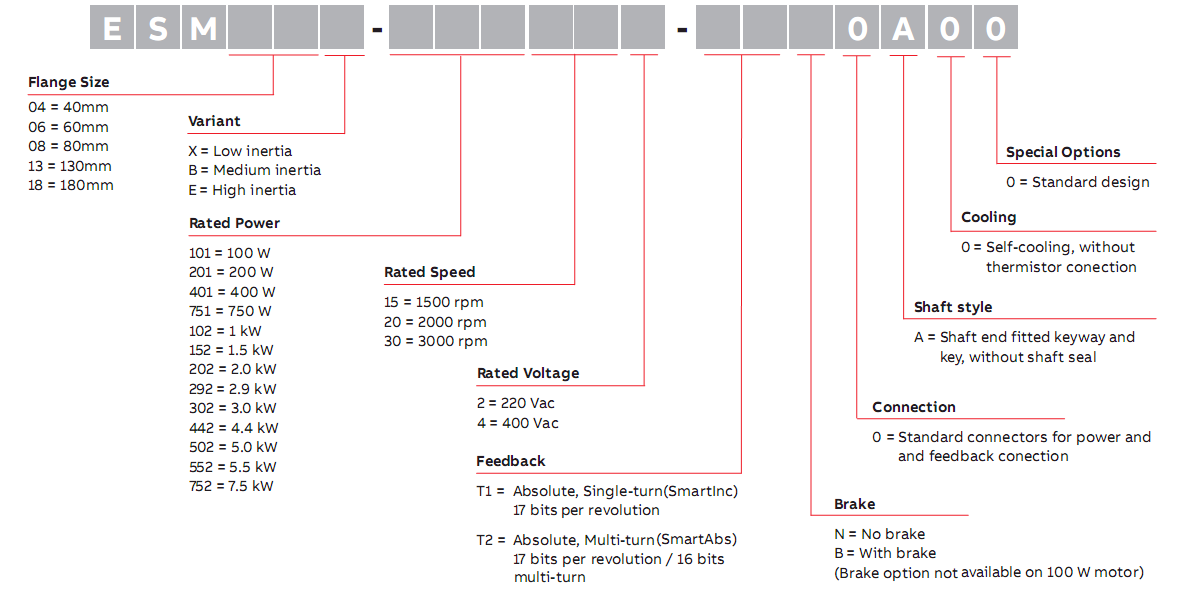 ESM系列伺服電機(jī)用于高動(dòng)態(tài)精度的運(yùn)動(dòng)控制由于其轉(zhuǎn)矩密度高,ESM系列伺服電機(jī)具有高動(dòng)態(tài)響應(yīng)。單圈和多圈高分辨率值編碼器反饋可選件可匹配應(yīng)用要求。ESM系列電機(jī)外殼符合IP65防護(hù)等級(jí)。額定功率從0.1kW至7.5kW,五個(gè)標(biāo)準(zhǔn)的框架法蘭尺寸為40,60,80,130和180毫米,可添加制動(dòng)可選件??蚣?0-80法蘭的電機(jī)提供引出線(xiàn),方便電機(jī)動(dòng)力和反饋的連接。